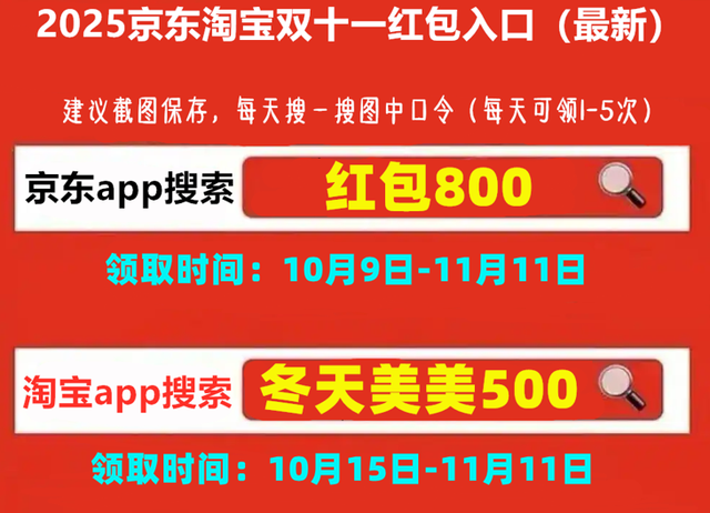 手机淘宝搜索:「冬天美美500」,每天领1次最高25888元的双11红包!调好闹钟,记得保存收藏。